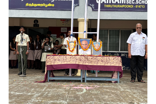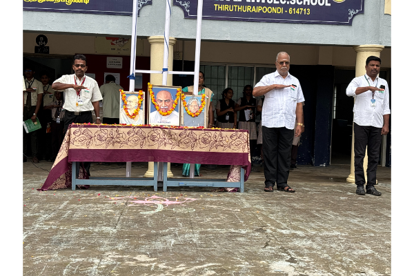 The 77th Republic Day was solemnly celebrated on 26.01.2026 (Monday) at our school. Mr. N. Somasundaram hoisted the National Flag. The Principal, the Management Representative, and a student delivered speeches highlighting the significance of the day. Peanut candy was distributed to all. The programme was graced by the presence of staff members and parents, who actively participated in the celebrations.