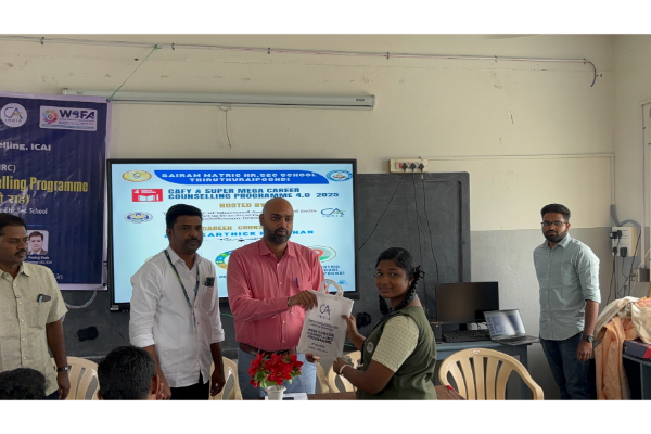 The career counseling committee of ICAI is conducting a pan-India initiative to create awareness about the charted Accountancy (CA) course among school students. As a part of this mission our school organized a CAFY & SUPER MEGA CAREER COUNSELLING PROGRAMME 4.0 on 27.11.2025 in the school campus.