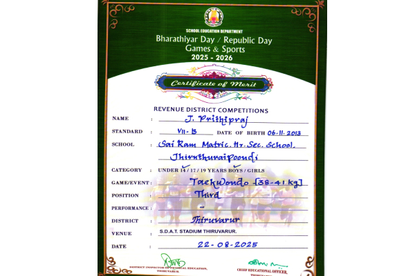 5 | PRITHIPRAJ J | VII-B | UNDER-14 | III |