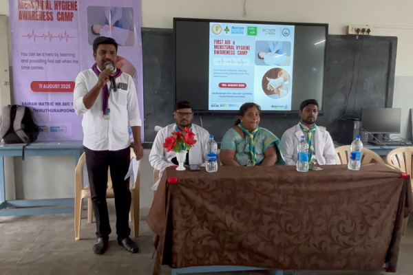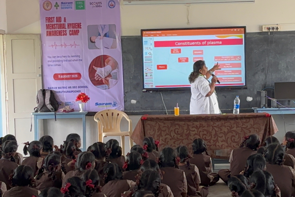 FIRST AID, Anemia and Menstural hygine awareness program was conducted to all students on 11th August 2025 by The Bharat Scouts & Guides, Sairam District Association, Tamilnadu.