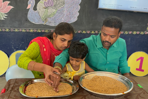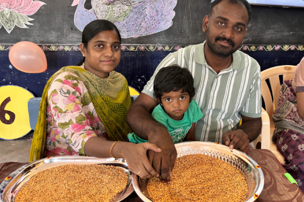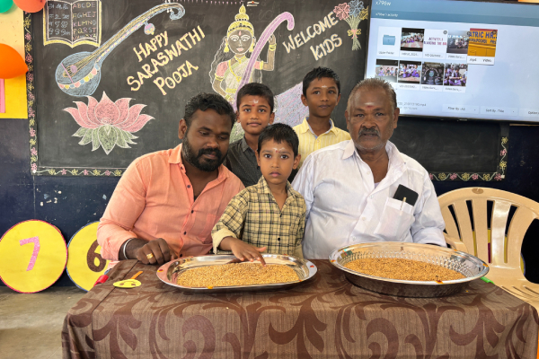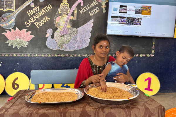 Saraswathi pooja and Vijayadashami festivals are grandly celebrated in our school on 02.10.2025. During Vijayadashami students were newly admitted to various classes. (Vidhyaarambham) writing practice was given to newly admitted students on the paddy spread plate.