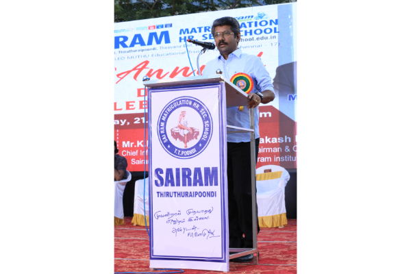 Our school 18th Annualday grandly celebrated in the presence of Thiru.R.Sathishkumar,Chief Business officer, Sairam Institutions on 21.08.2025. Chief guest Mr.KPY Bala, Actor and comedian encouraged our student by his comedy and Motivational Speech. Mr.A.Muthuvairavan, CSO Sairam institutions and chief guest distributed the Prizes.