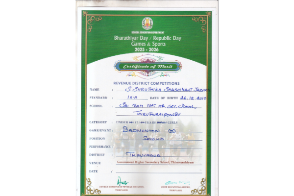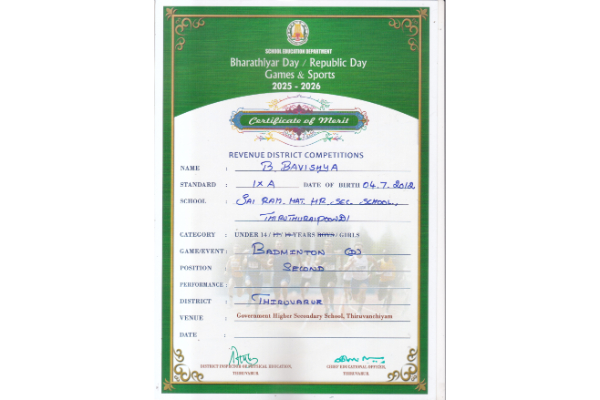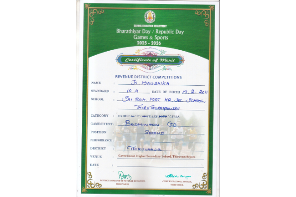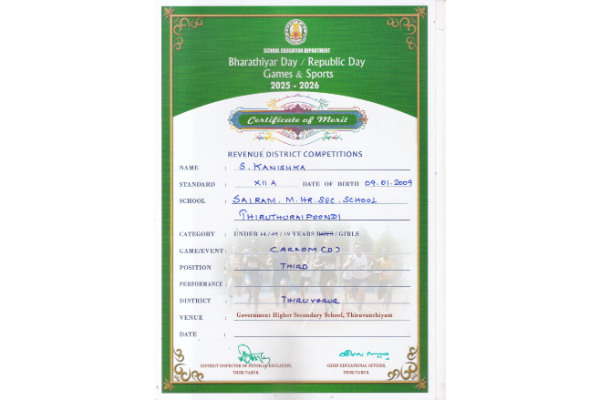 SRMHSS-TTP-CONGRATULATIONS ON THE REMARKABLE ACHIEVEMENT IN DISTRICT LEVEL BHARATHIYAR DAY/REPUBLIC DAY GAMES/SPORTS 2025-26 -TABLE TENNIS, CARRON AND BADMINTON WINNERS. DT. 06.11.2025